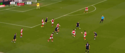 第19分钟,埃泽直塞再送助攻,马丁内利突入禁区破门,阿森纳2-0维冈