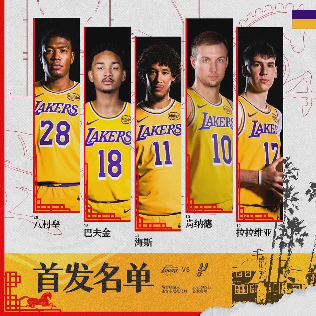 北京时间2月11日,NBA常规赛:湖人主场vs马刺,西部第五对阵西部第二。湖人伤了一套首发:东契奇(左腿筋拉伤)、里夫斯(左小腿受伤)、斯玛特(右脚踝酸痛)、詹姆斯(左脚关节炎)和艾顿(右膝酸痛),今天都不打。
